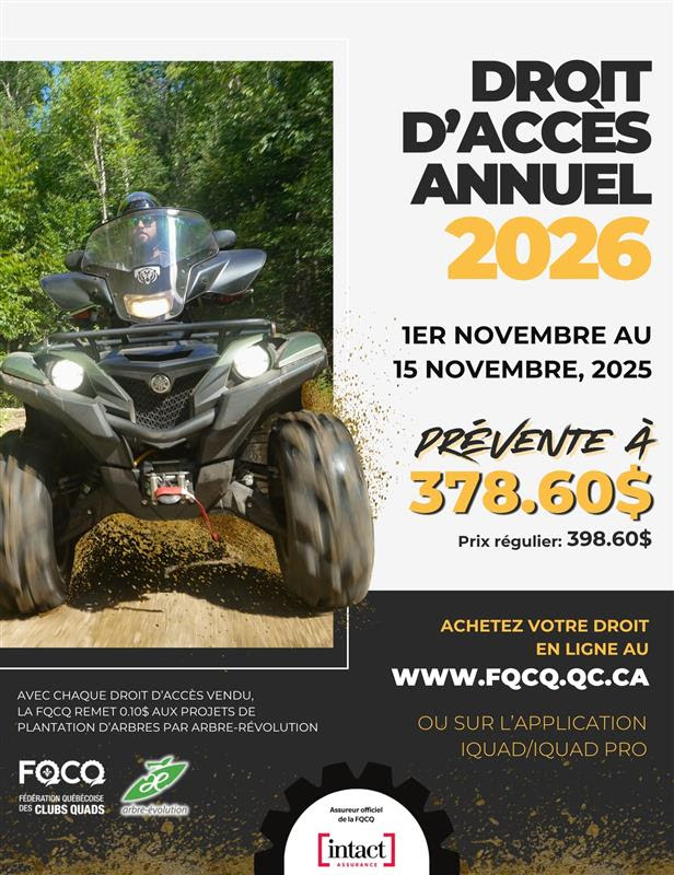 Bonjour quadistes! Bienvenue sur le site Web du Club de VTT Les Manie-Aques de Woodbridge! Vous y retrouverez plein d'informations pertinentes.